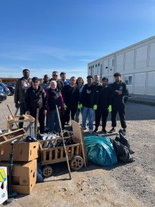 Bruckmühl, 04. März 2026 – Bei herrlichen Frühlingstemperaturen startete am vergangenen Samstag die Ramadama-Aktion mit den Bewohnern auch rund um die Wohncontainer an der Wernher-von-Braun Straße. Nach einer kurzen Einweisung wurden Gruppen gebildet und die Tüten füllten sich schneller mit allerlei Müll – von To-go-Bechern über Pfandflaschen bis zu Holzpaletten und unzähligen Zigarettenkippen.